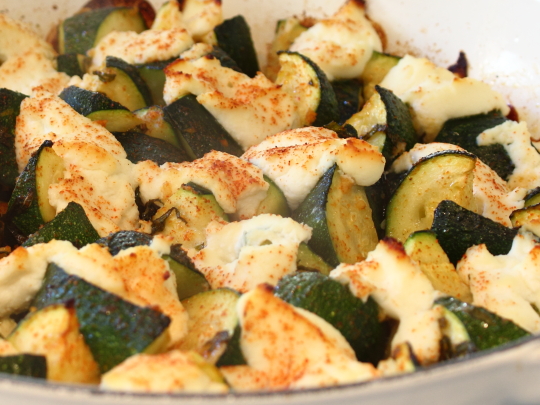 I know your oven smokes a little bit when set to 450 degrees F. (mostly because you only clean it like once a decade), but that’s the temperature needed to brown the edges of the zucchini and cheese, before the liquids begin to leak out.